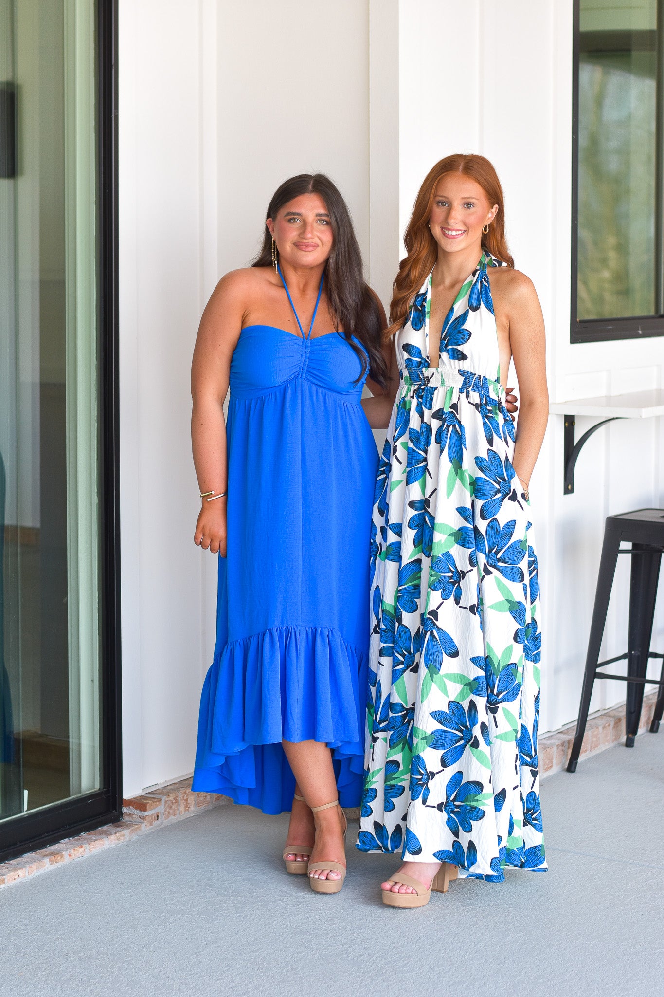 - Halter neckline with adjustable tie behind the neck