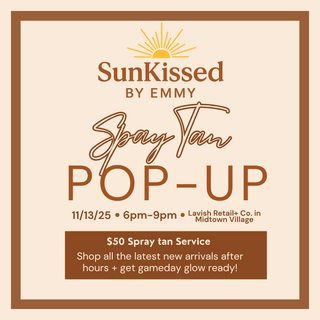Get gameday ready with us! Join us November 13th from 6pm-8pm for our spay tan pop-up event with Sunkissed By Emmy! Dm @sunkissedbyemmy to book your appointment! Walk-ins are also welcome.